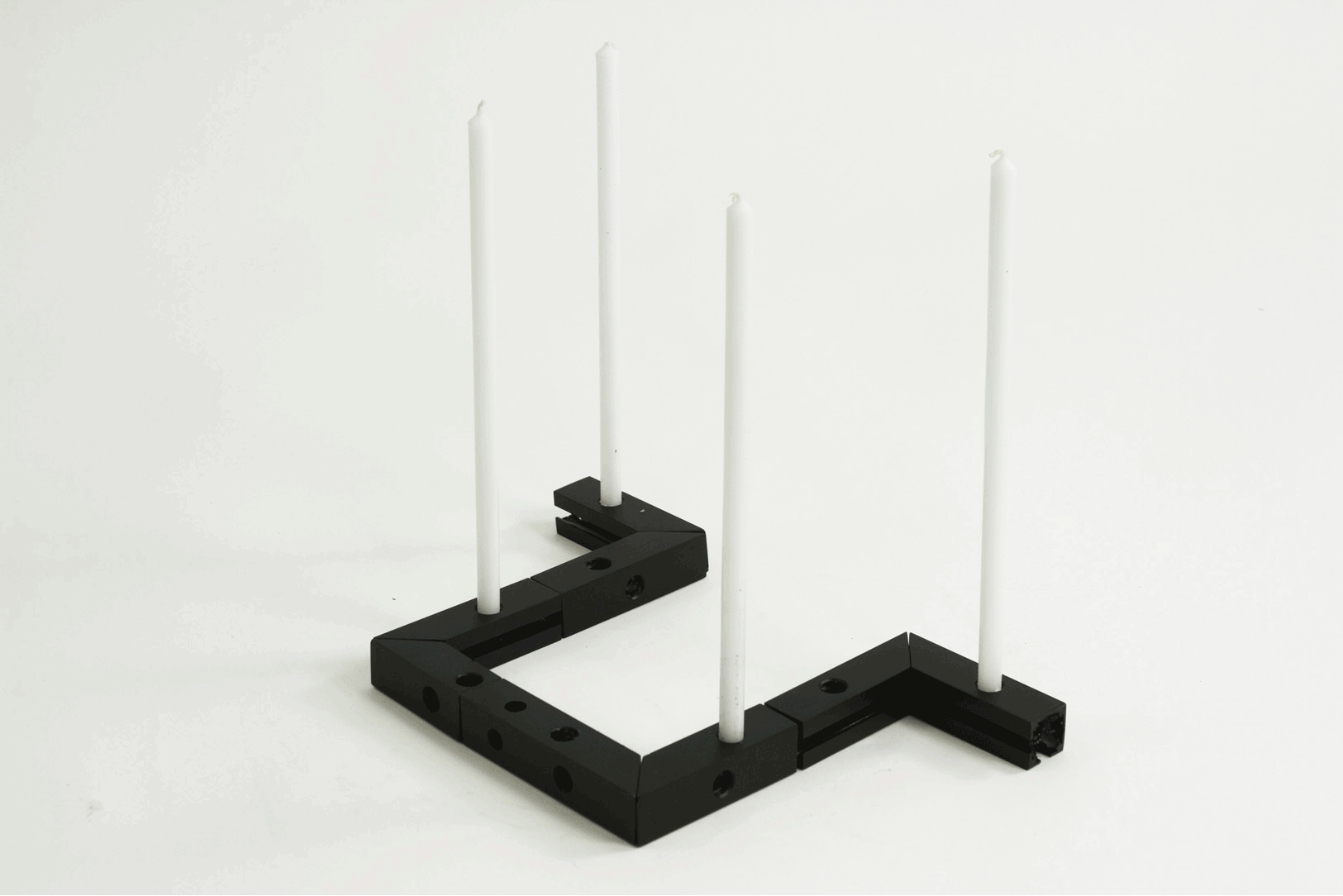 The Grid-Work Candle Holder is a puzzle-like object made from a set of aluminium off-cuts. The design is intended for our COVID times in which every day is blending to the next. The design allows for a small daily ritual of re-invention, with the possibility of a new candle holder every day.
