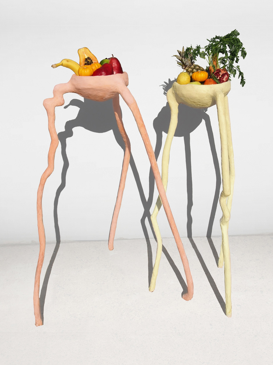 Tall Bowl is an imaginative attempt to find connection even when we can no longer occupy physical space together in the same way. The sharing of food as always been part of the human story, central to that the dinner table acts as a unifier, a place of community. So how can you isolate this practice without alienating its participants? By combining the table and the food vessel into a joint moveable structure. Constructed from accessible materials – a stash of hoarded loo paper (of course), PVA, flour, plaster, coloured with turmeric and using scrap plywood as a base the tall bowls took shape. Tall bowl injects comic relief in the monotony of our COVID routines, bringing us together with a meal from adjoining balconies, over the fence, or from your mates front yard.