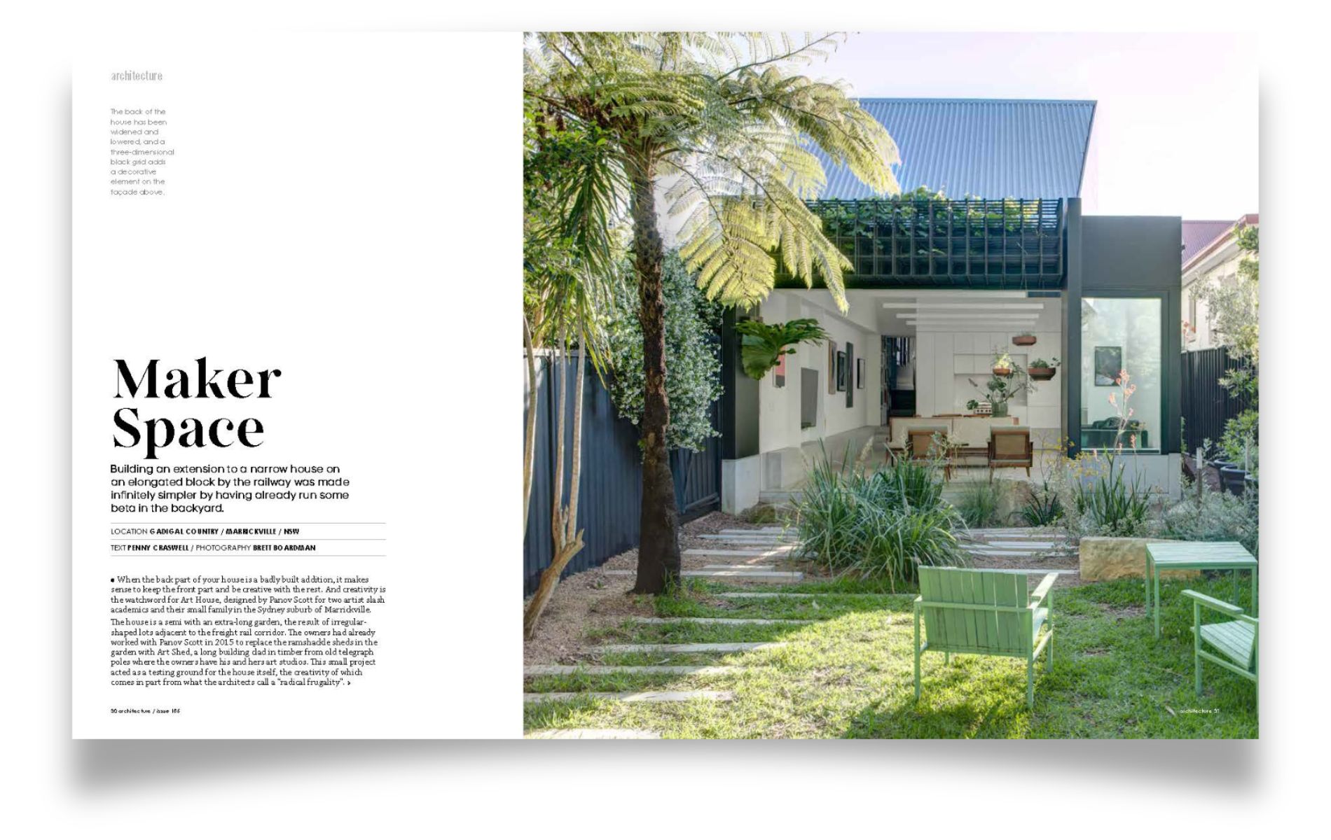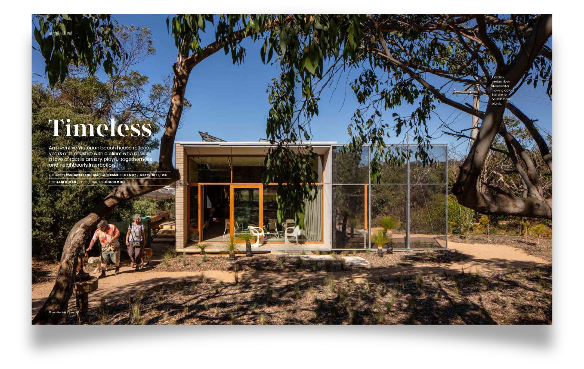 And of course, our regular segments Upfront and Upfront Garden share a curated spread of projects, products or creations that we love. This issue is full of smart initiatives, from a 21-square-metre mobile home to the creative response from one of Melbourne’s felled plane trees. A New Normal (led by Finding Infinity) has once again united the cream of the country’s architects, designers and artists to address key issues of the moment, and a team of great minds – McIldowie Partners with Joost Bakker (Future Food System) – has built a solar-powered, carbon-sequestering school with near zero-waste as a place for regenerative learning.