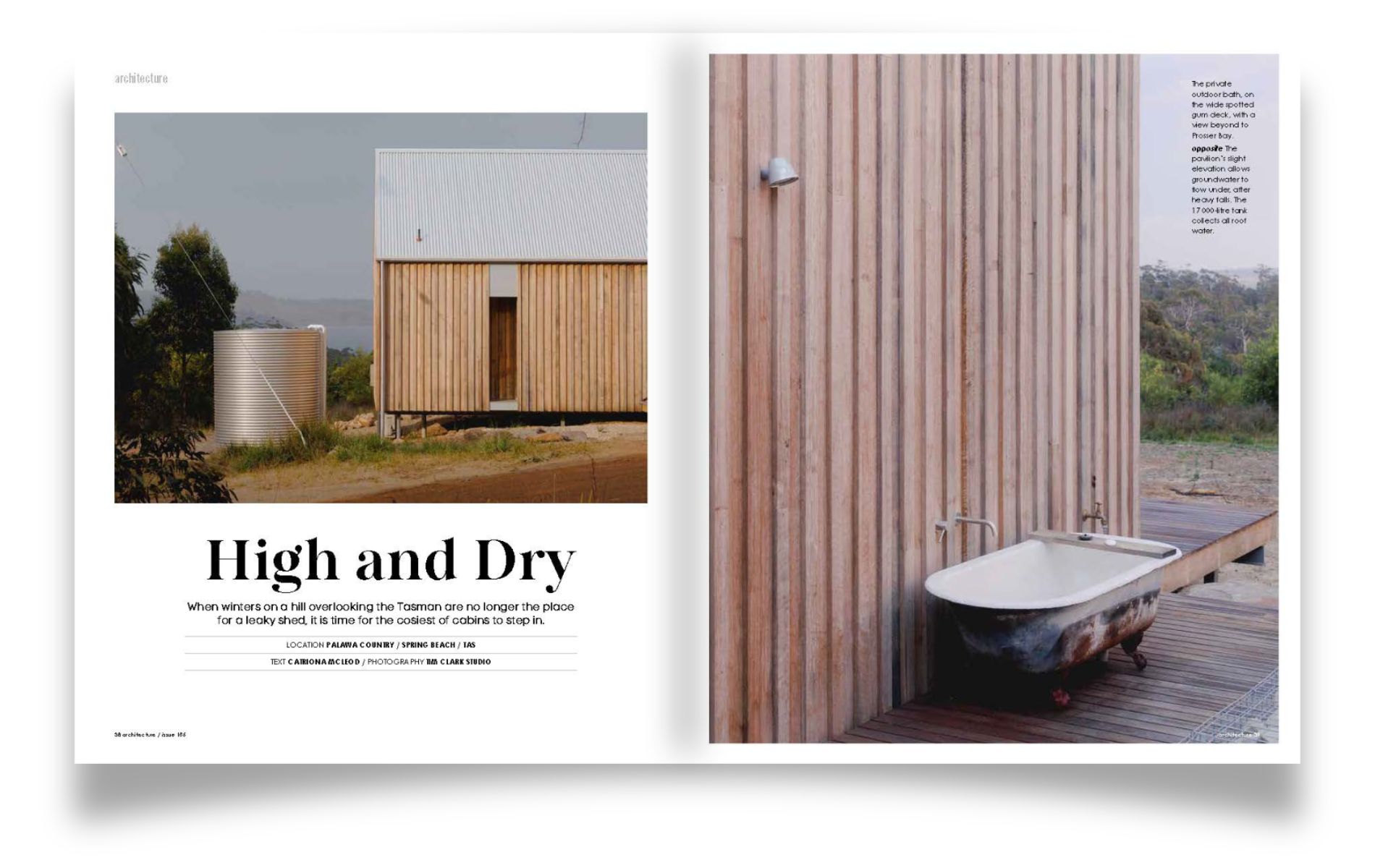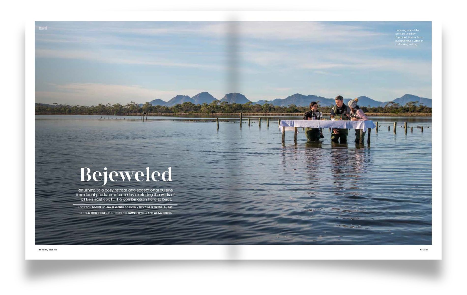 And finally, our travel feature takes us to Tasmania’s east coast, where the Saffire Freycinet lodge is sited above a peaceful cove with surreal views of The Hazards. Days are filled with hikes, swims and oyster tastings, while evenings bring exceptional local cuisine and the comfort of a retreat deeply connected to its setting .