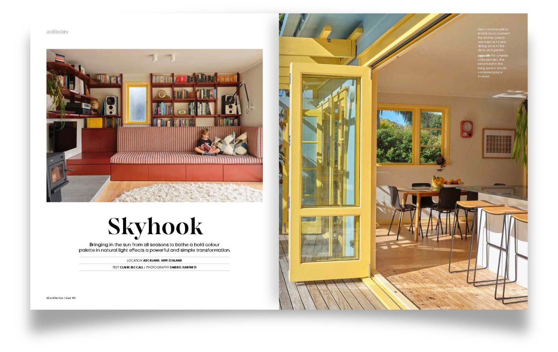 And for our last architecture feature, a compact 1940s bungalow in Auckland has been reorganised to “put life where the sun is.” Service areas were shifted south, living spaces opened to the north and west, and a bright yellow palette brings warmth and joy. Architecture by Pac Studio.