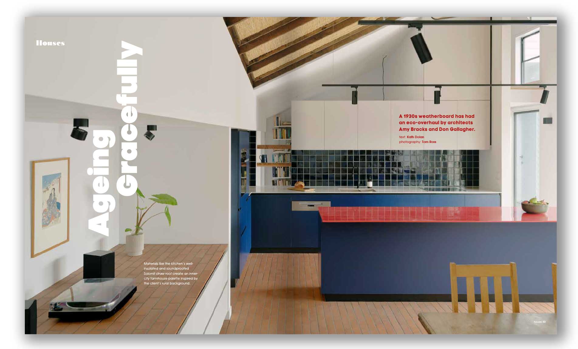 After that, check out a 1930s weatherboard that has had an eco-overhaul by architects Amy Bracks and Don Gallagher, utilising as many sustainable, recycled and reclaimed materials as possible and new technologies like a Tesla solar battery and roof tiles.ageing gracefully—green magazine issue 85 mockup