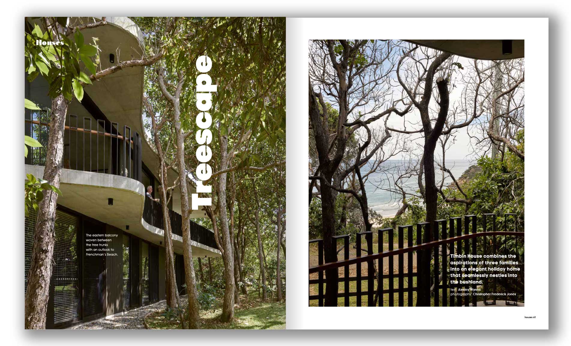 Then, head over to Timbin House, nestled up in the treetops and overlooking Frenchman’s Beach on Queensland’s Minjerribah (North Stradbroke Island). A collaborative project undertaken by the three families co-owning the holiday home, the brief was “camping amongst the trees, but without the tent.”treescape—green magazine issue 85 mockup