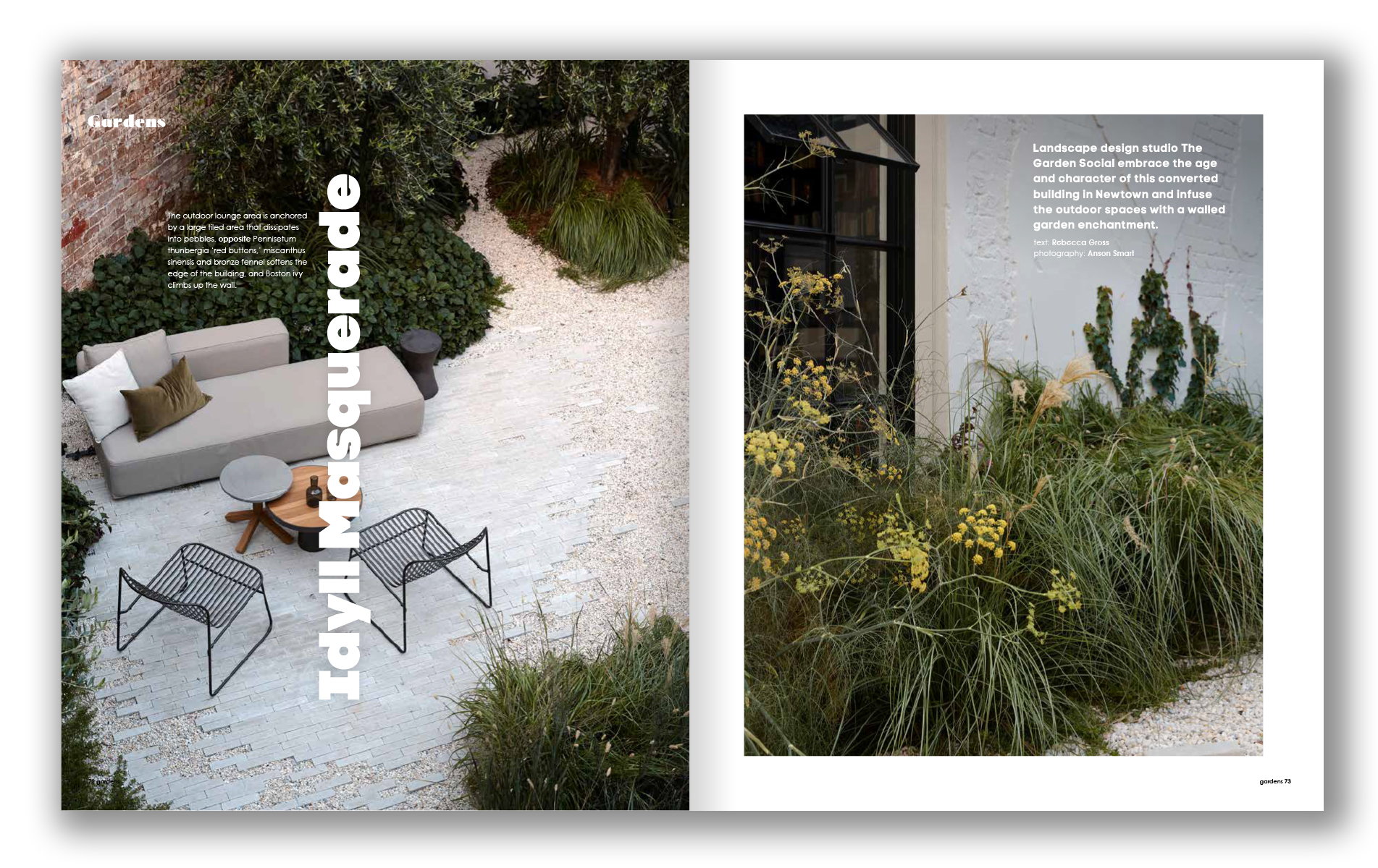Next up, our two garden features. In the first one, landscape design studio The Garden Social embrace the age and character of this converted building in Newtown and infuse the outdoor spaces with a walled garden enchantment.