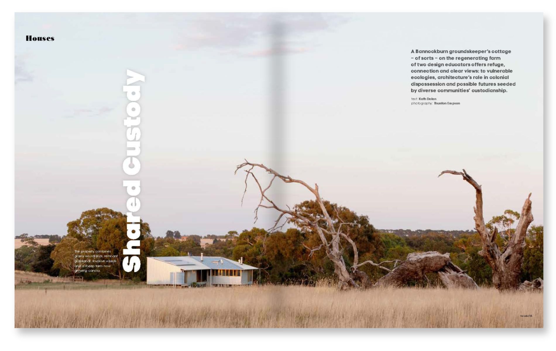 For our third house feature; a Bannockburn groundskeeper ’s cottage – of sorts – on the regenerating farm of two design educators offers refuge, connection and clear views: to vulnerable ecologies, architecture’s role in colonial dispossession and possible futures seeded by diverse communities’ custodianship. Architecture by Peter Brew and Simone Koch.
