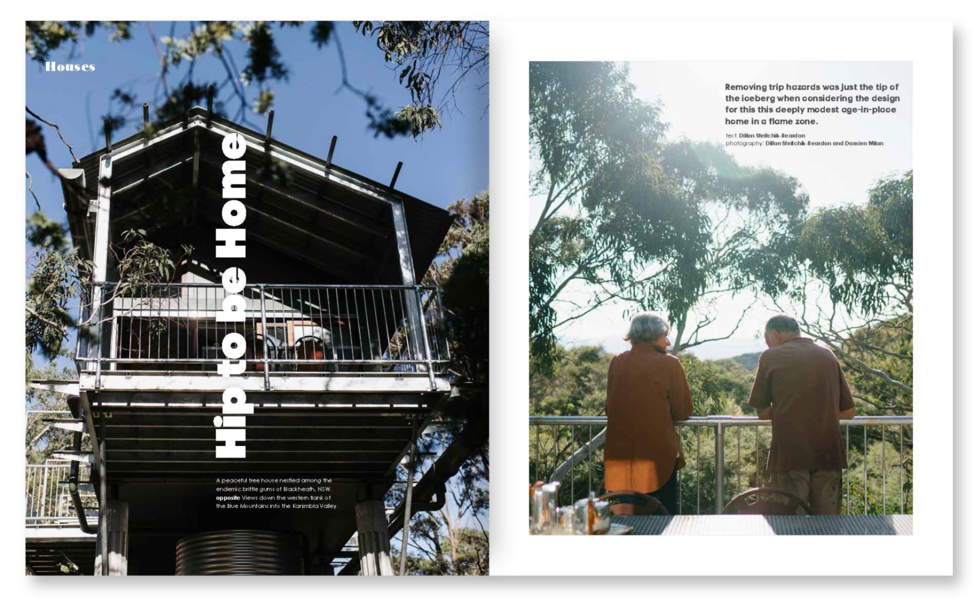 And for our final house feature; removing trip hazards was just the tip of the iceberg when considering the design for this this deeply modest age-in-place home in a flame zone, in Blackheath, New South Wales. With architecture by Bobbie Bayley and Owen Kelly from Dogspike Design & Architecture (formerly The Grand Section).