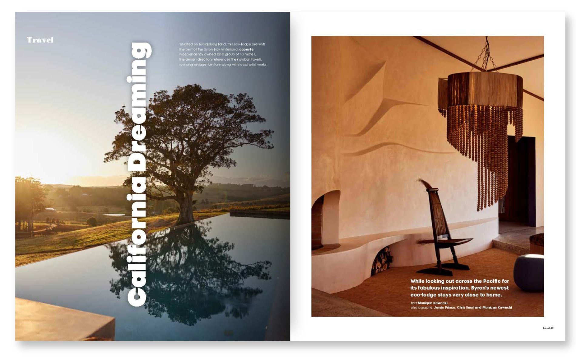And finally for our travel feature; while looking out across the Pacific for its fabulous inspiration, Byron’s newest eco-lodge—Sun Ranch—stays very close to home.