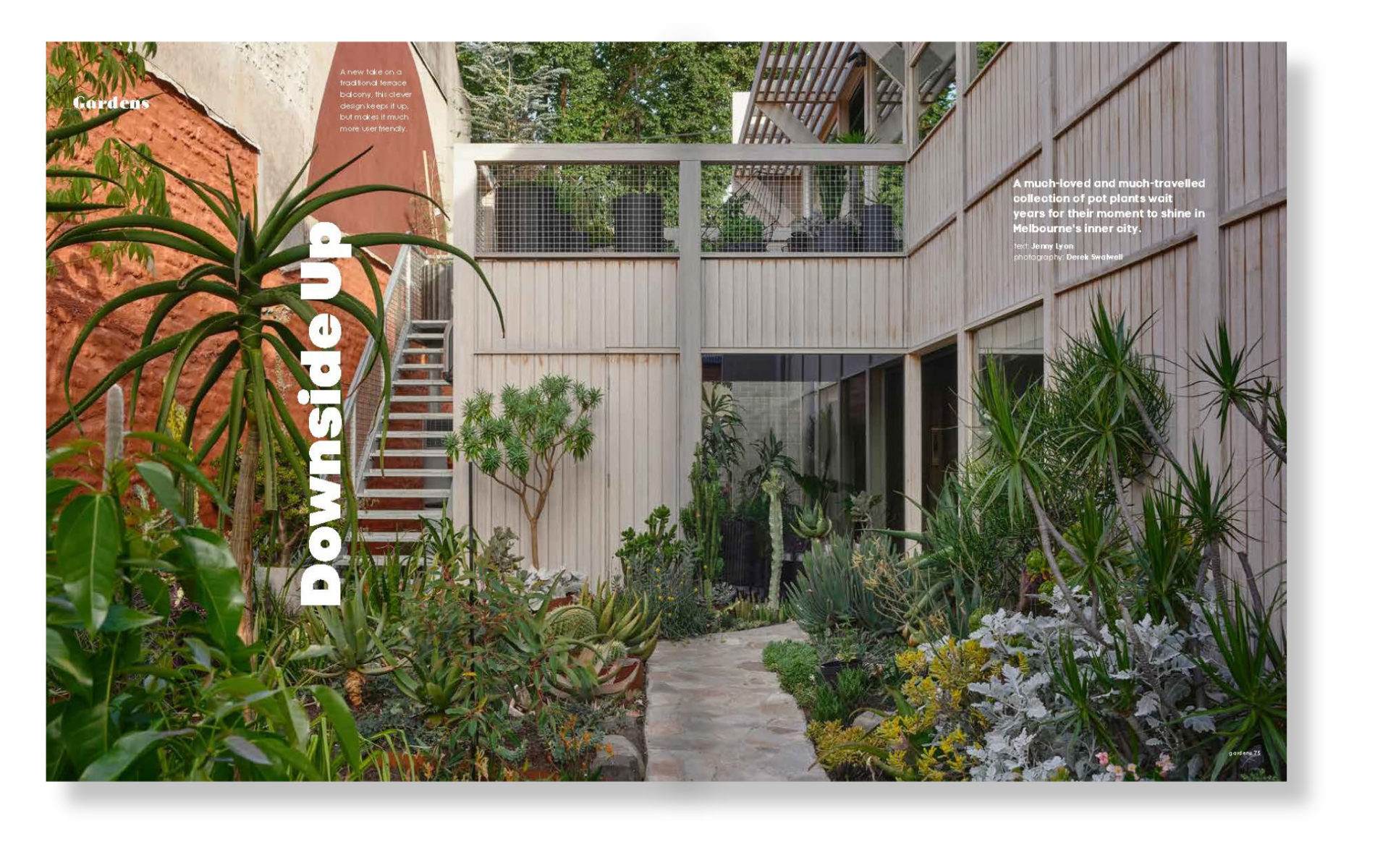 In our first garden feature, a much-loved and much-travelled collection of pot plants wait years for their moment to shine in Melbourne’s inner city suburb, North Fitzroy. House by Kennedy Nolan. Garden by house owner, Alison.