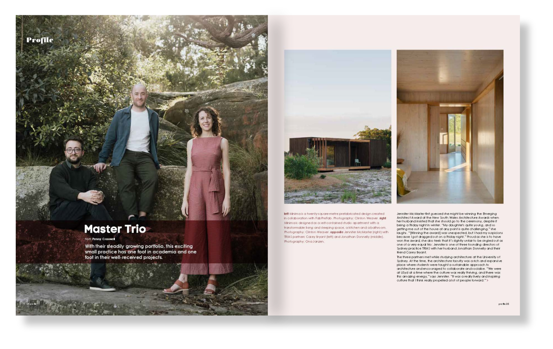 But up first, we profile Jennifer McMaster, her husband Jonathan Donnelly and their friend Casey Bryant—the trio behind Sydney architecture and design studio TRIAS.